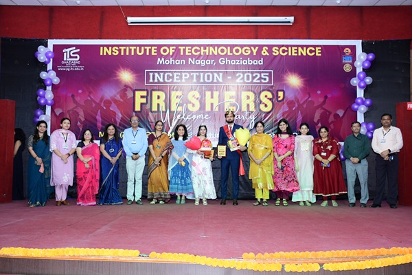 The function commenced with the invocation of Goddess Saraswati through the ceremonial lighting of the lamp by the, Shri Surendra Sood (Director – PR), Dr. Sunil Kumar Pandey(Director – ITS) , Dr. Ajay Kumar (ITS School of Management) and Dr. Uma Gulati (Chairperson – MBA) marking an auspicious beginning. Following the lamp lighting, Dr. Pandey Sir addressed the gathering, sharing his valuable thoughts and extending best wishes to the fresher’s for their academic journey ahead. On this occasion, Shri Surendra Sood, also addressed the students. He motivated them to work as a team, seek guidance from seniors and faculty whenever needed, and focus on learning during their two years of study, emphasizing the importance of collaboration and continuous growth.