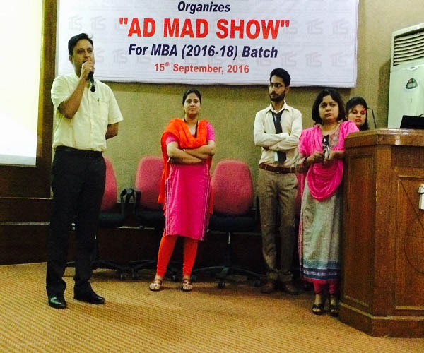 Dr. Sucheta Singh, Dr. SurenderTiwari& Prof. Anuja Roy judged the event. The first winners of AD MAD SHOW were SHAILESH & AMANDEEP and the second winners were SARTHAK, VIMAL & AMAN and third winners were SUMIT, ASIF, SHUBHAM, & AKANSHA.