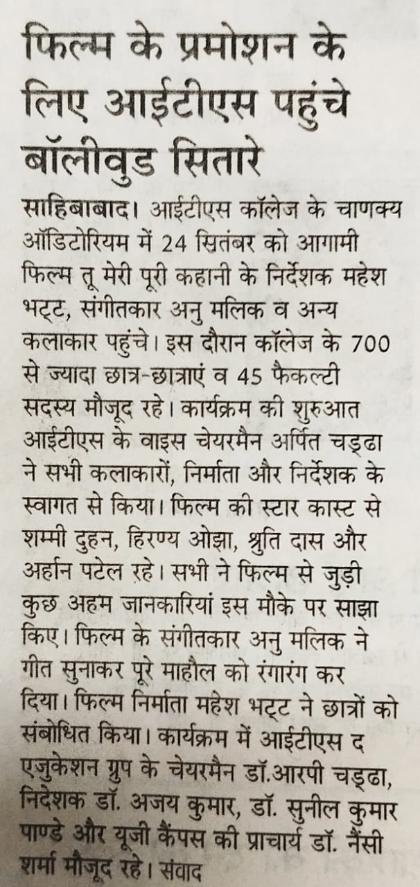 I.T.S. Ghaziabad received award Best College Placement Award-2019