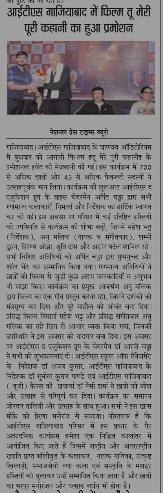 I.T.S. Ghaziabad received award of "Most Preferred UG/PG Institute of the Year"