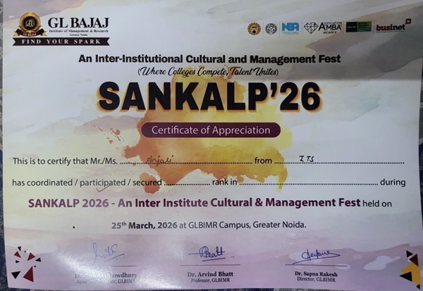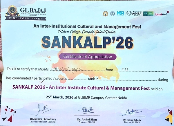 The participation of MBA 1st Year students from ITS Mohan Nagar, Ghaziabad in the “Shark Pool – Pitch Perfect” competition at GL Bajaj Institute of Management & Research highlights the institute’s focus on fostering innovation and entrepreneurship among students.
